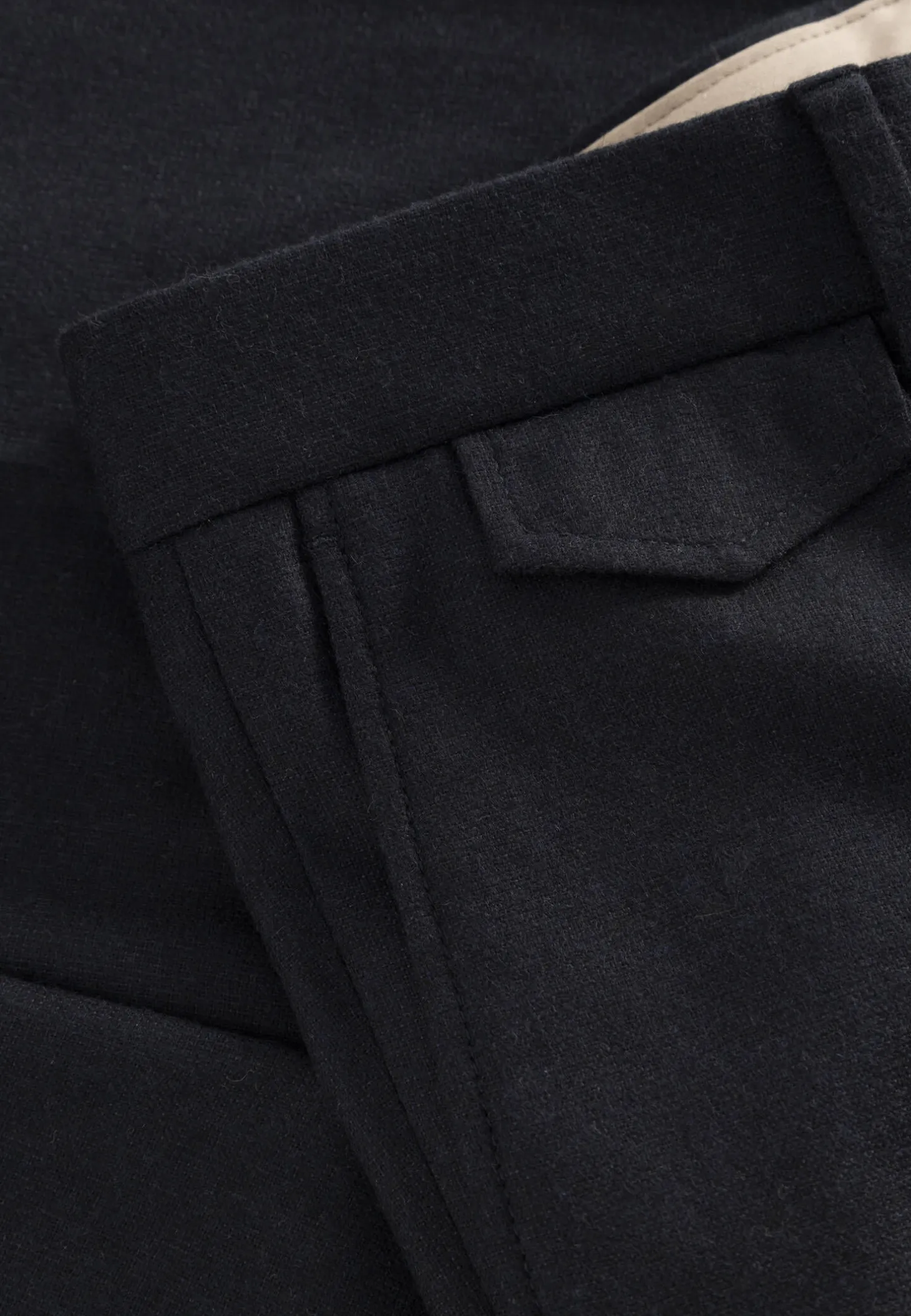- Bund mit Gürtelschlaufen und kleinem Schlitz an der Rückseite