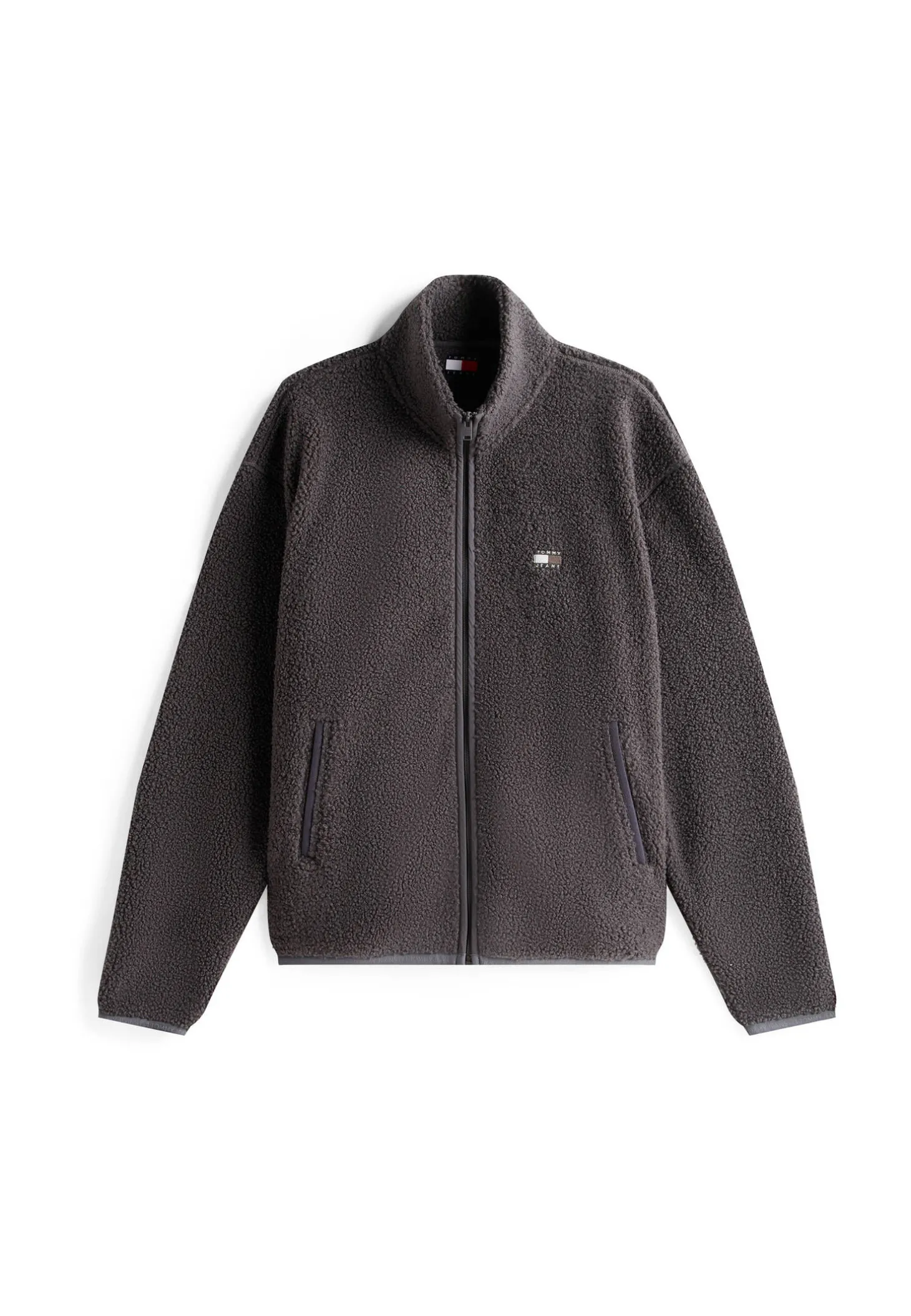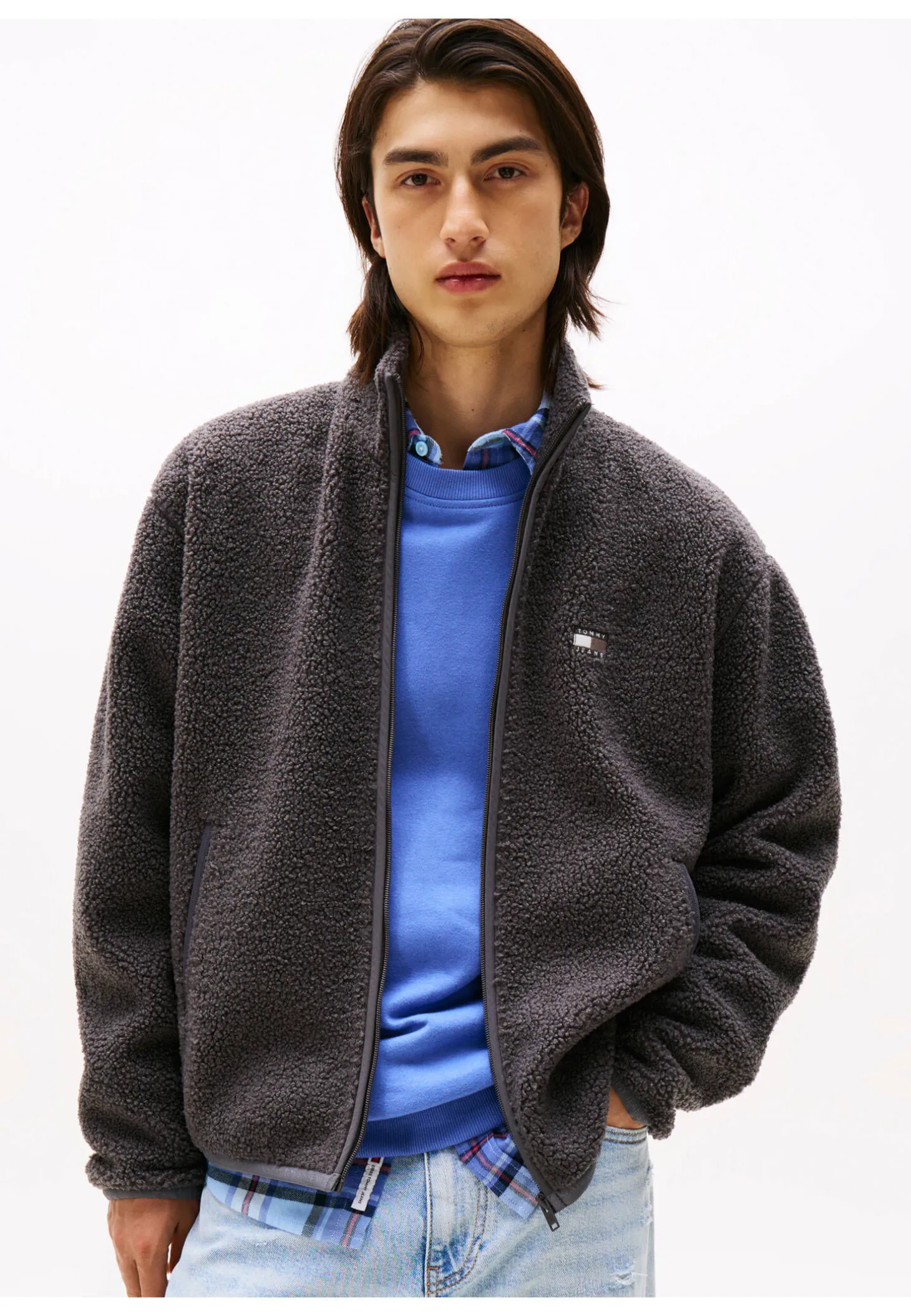 Die locker geschnittene Jacke von Tommy Jeans wärmt mit kuscheligem Teddyfleece und passt bestens zu den Denim-Modellen des Labels.