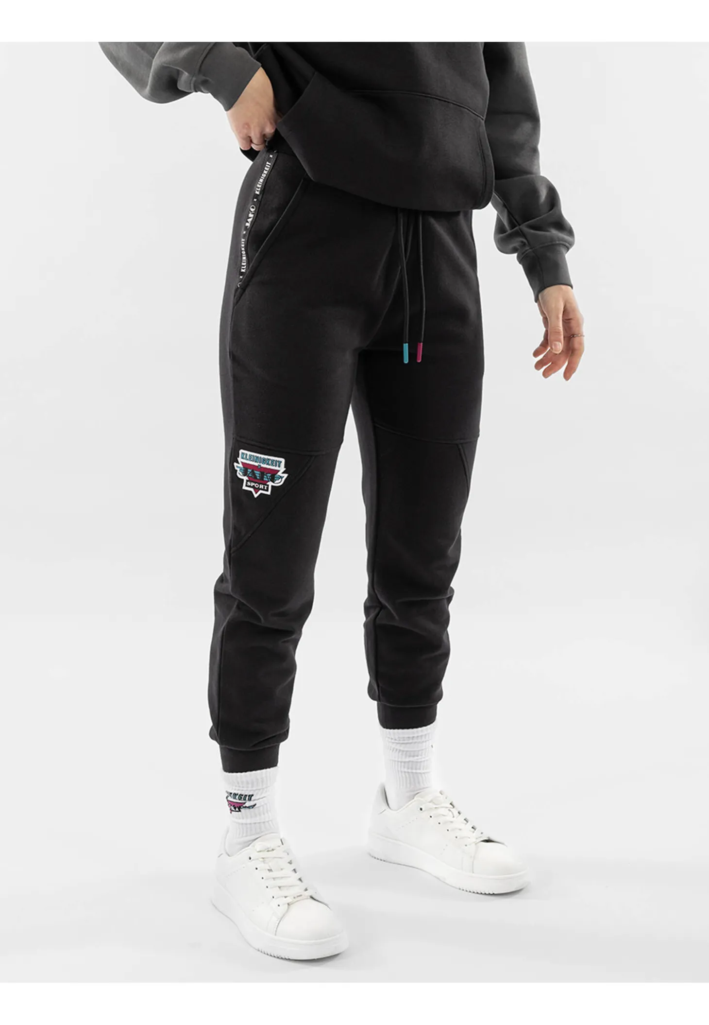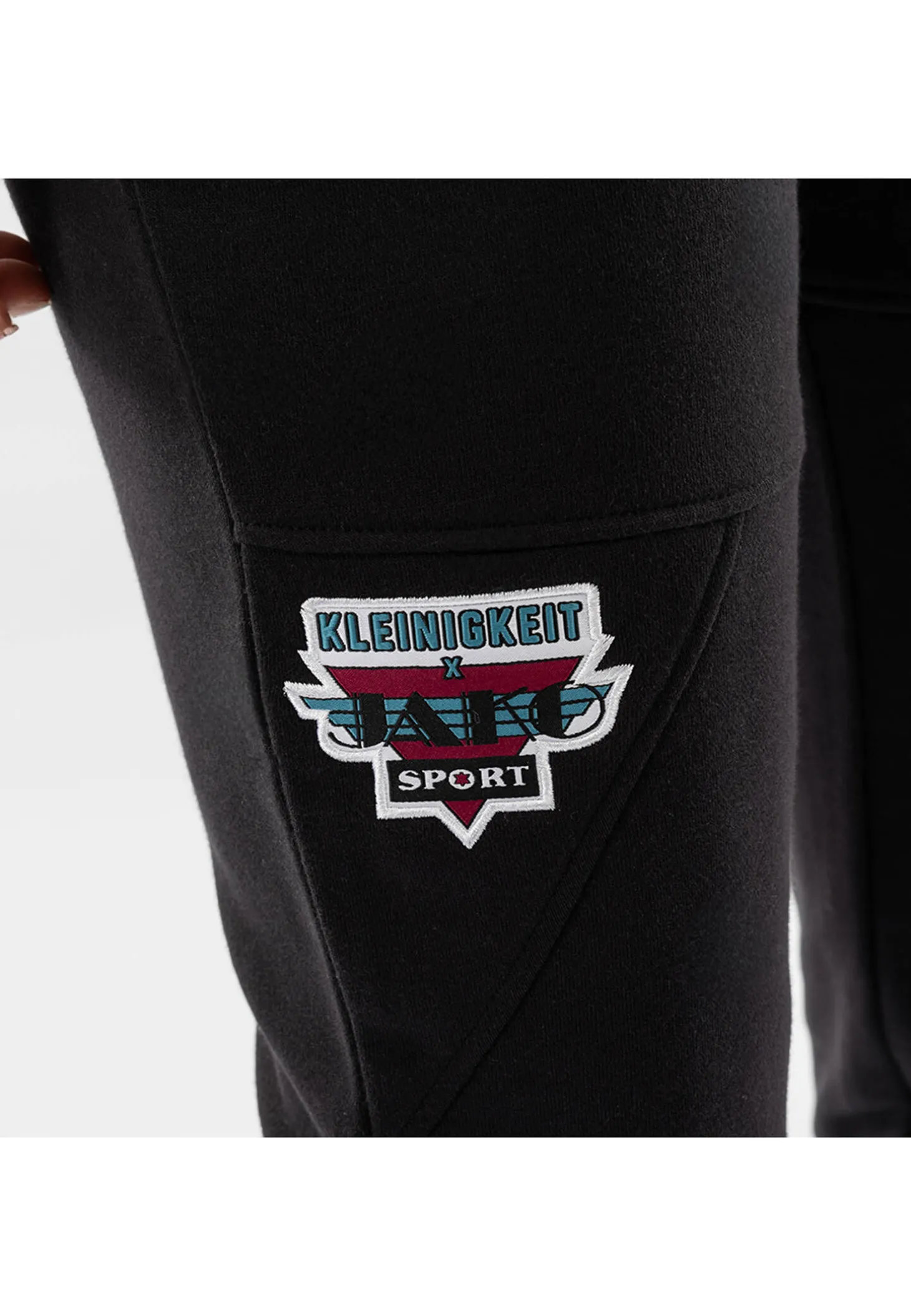 Die retroragende Jogginghose von Kleinigkeit x JAKO vereint Retro-Design, höchsten Tragekomfort und Nachhaltigkeit. Das Kleinigkeit x JAKO Logo und das passende Tape verleihen ihr eine sportlich-elegante Note im angesagten Retro-Look.