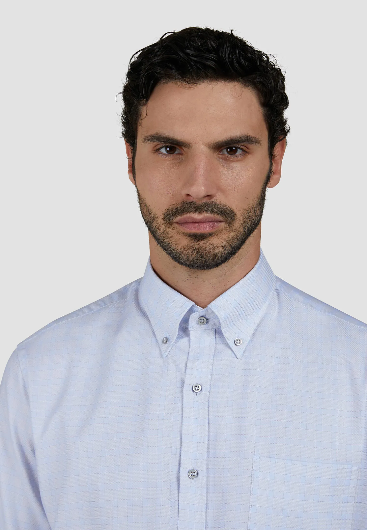 - Ausschnitt & Kragen: Button-Down-Kragen