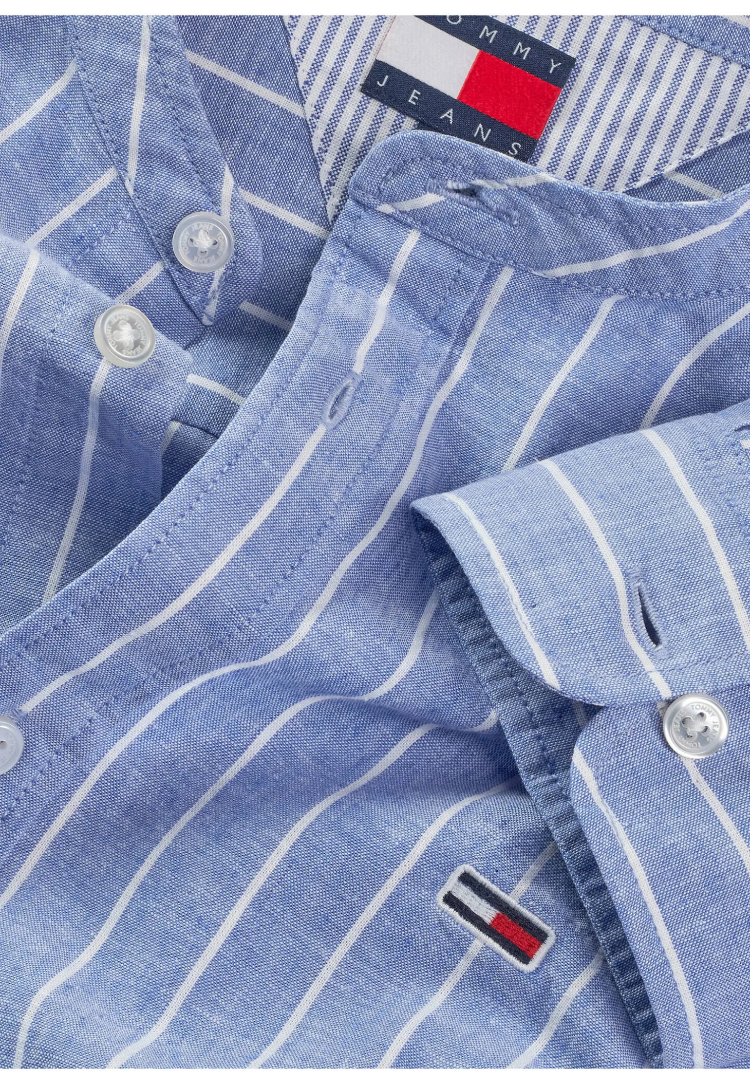Gestreiftes, langärmeliges Hemd von Tommy Jeans aus einer komfortablen, sommerlichen Fasermischung mit Bio-Baumwolle und Leinen.