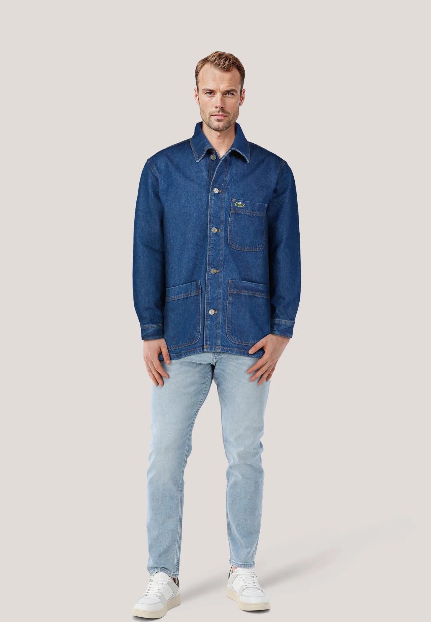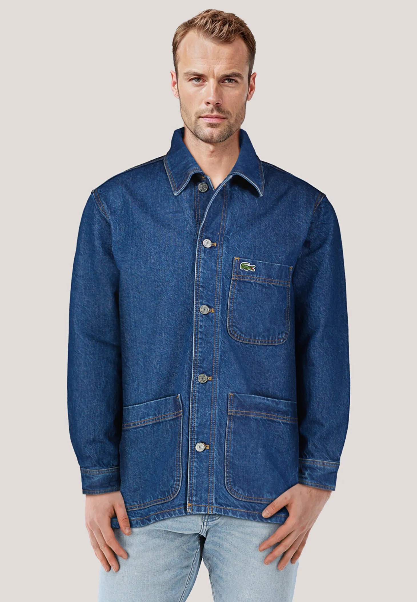 Ein zeitloses Hemd aus Denim, das die bekannte Eleganz und das durchdachte Design von Lacoste verkörpert. Mit kontrastierenden Ziernähten und drei Taschen auf der Vorderseite bietet es einen praktischen und anspruchsvollen Stil. Ideal, um es über einem T-Shirt zu tragen und einen lässigen, modernen Look zu erzielen.