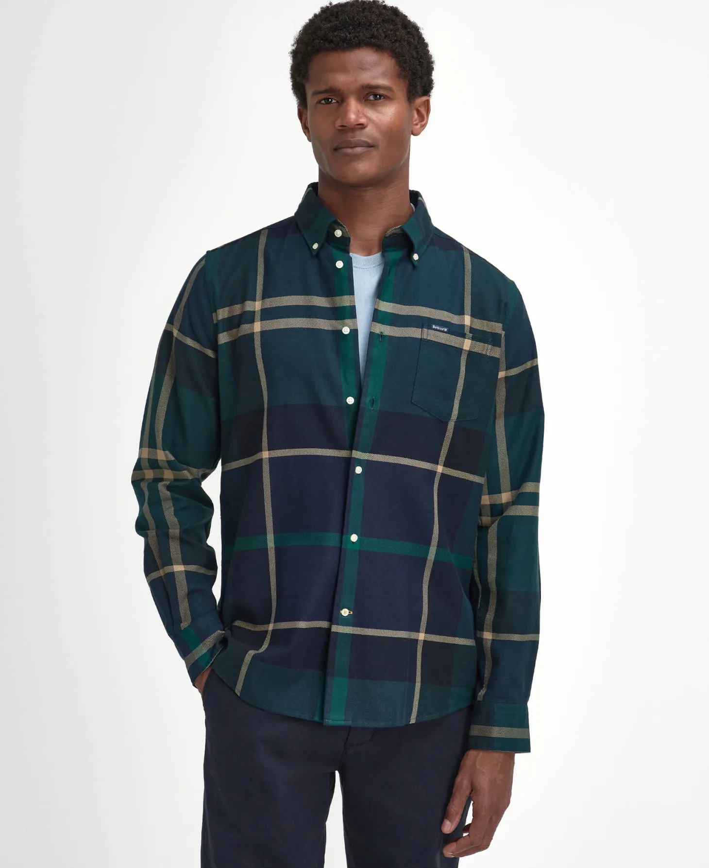 Das karierte Hemd Dunoon Tail von Barbour besticht durch ein kräftiges Farbspiel und einer modischen Knopfleiste. Der Button-Down-Kragen sitzt perfekt und sieht zudem sehr geschmackvoll aus. Außerdem gibt dir die variabel angeschrägte Manschette genügend Spielraum für deine individuelle Passform.