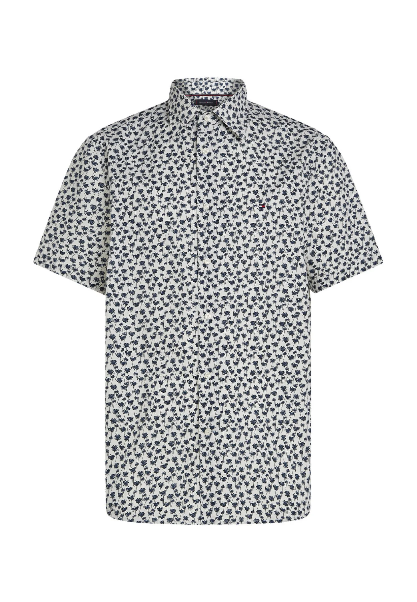 Das kurzärmelige Hemd von Tommy Hilfiger bringt mit Allover-Palmendruck in Sommerstimmung.
