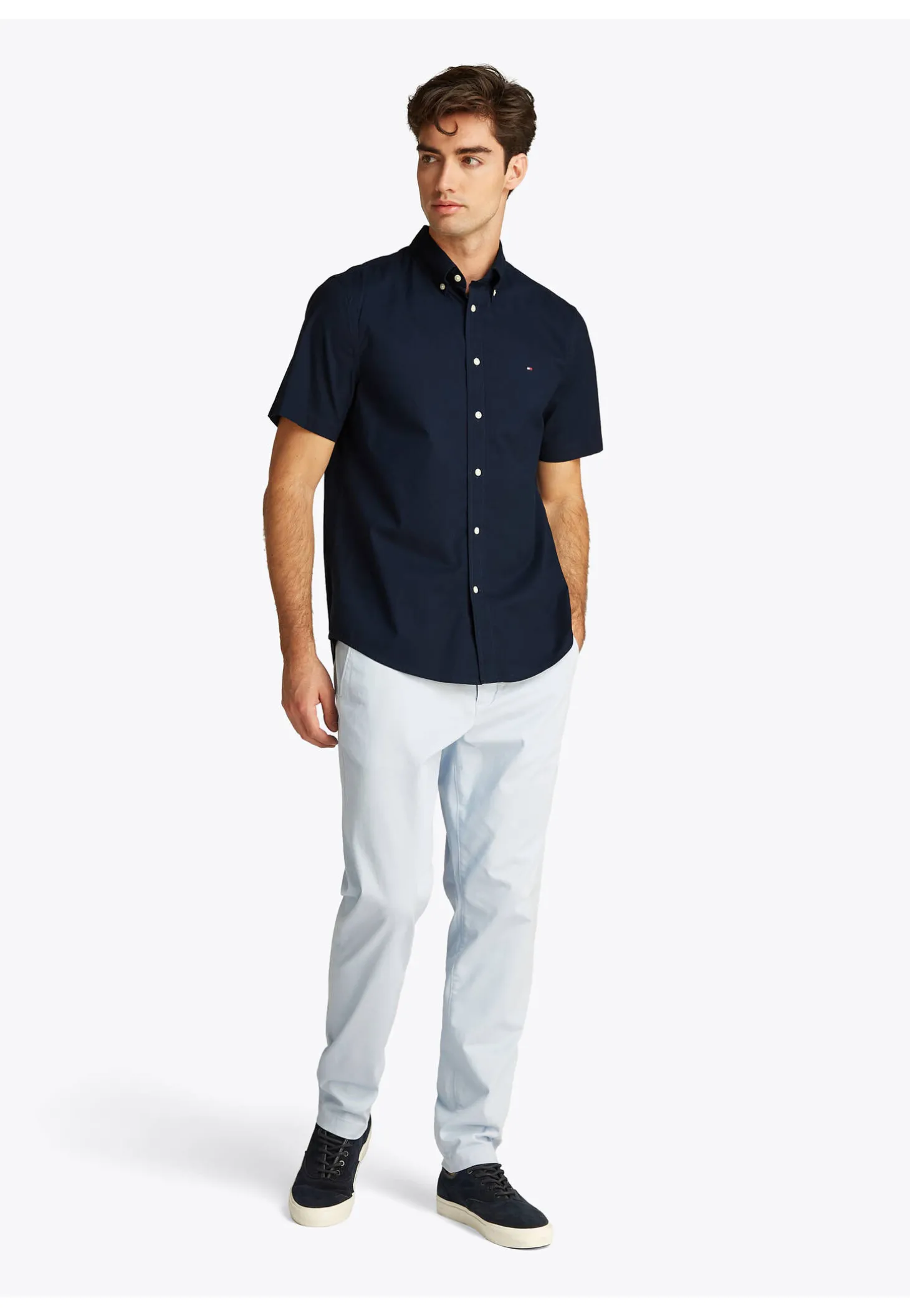 Das kurzärmelige Hemd von Tommy Hilfiger ist an warmen Tagen der ideale Kombipartner zu Shorts, Jeans und Chinos.