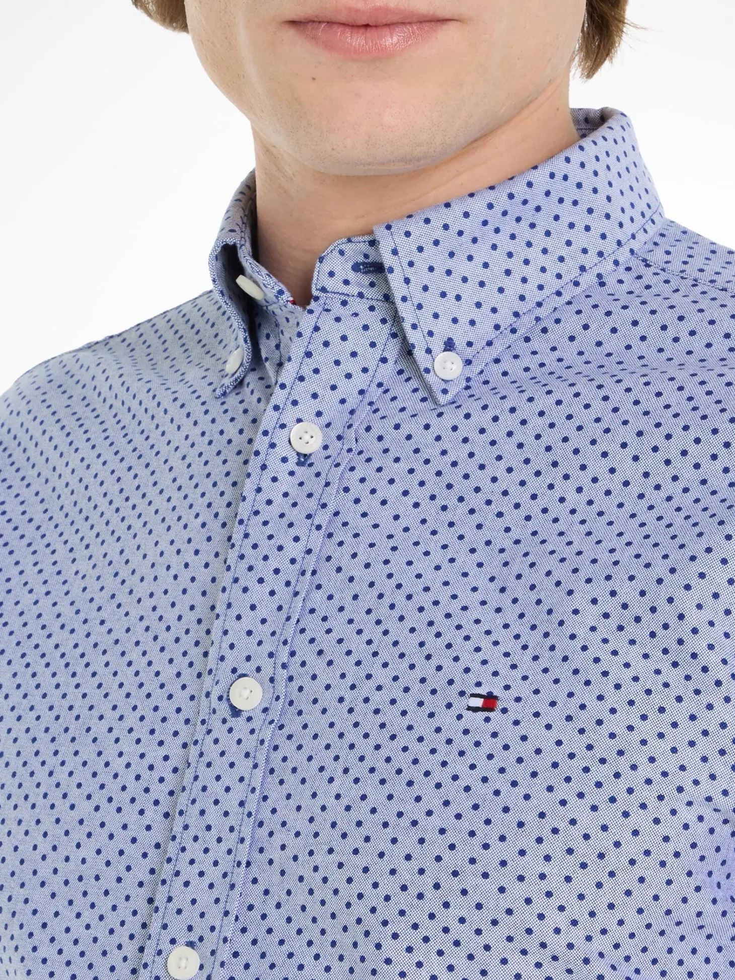 Mit einem lässigen Punktemuster brilliert das Hemd von Tommy Hilfiger. Der klassische Button-Down-Kragen und die markentypische Logostickerei auf der Brust runden das Oberteil perfekt ab. Die weiche Baumwolle liegt locker, lässig in unterschiedlichsten Alltag-Situationen auf der Haut.