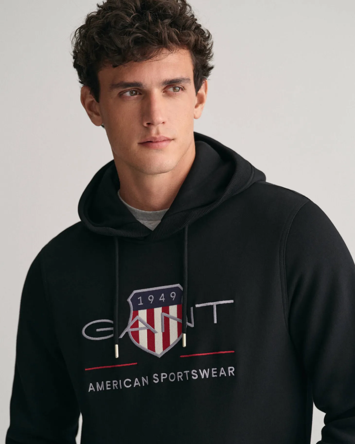 Der Archive Shield Hoodie von Gant präsentiert sich mit einer gestickten Wappen-Grafik im Retro-Stil.