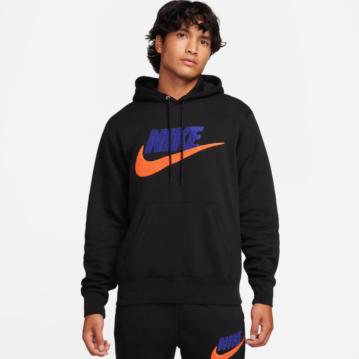 Locker geschnittener Club Fleece Hoodie von Nike mit Frottee-Logoapplikation an der Vorderseite.