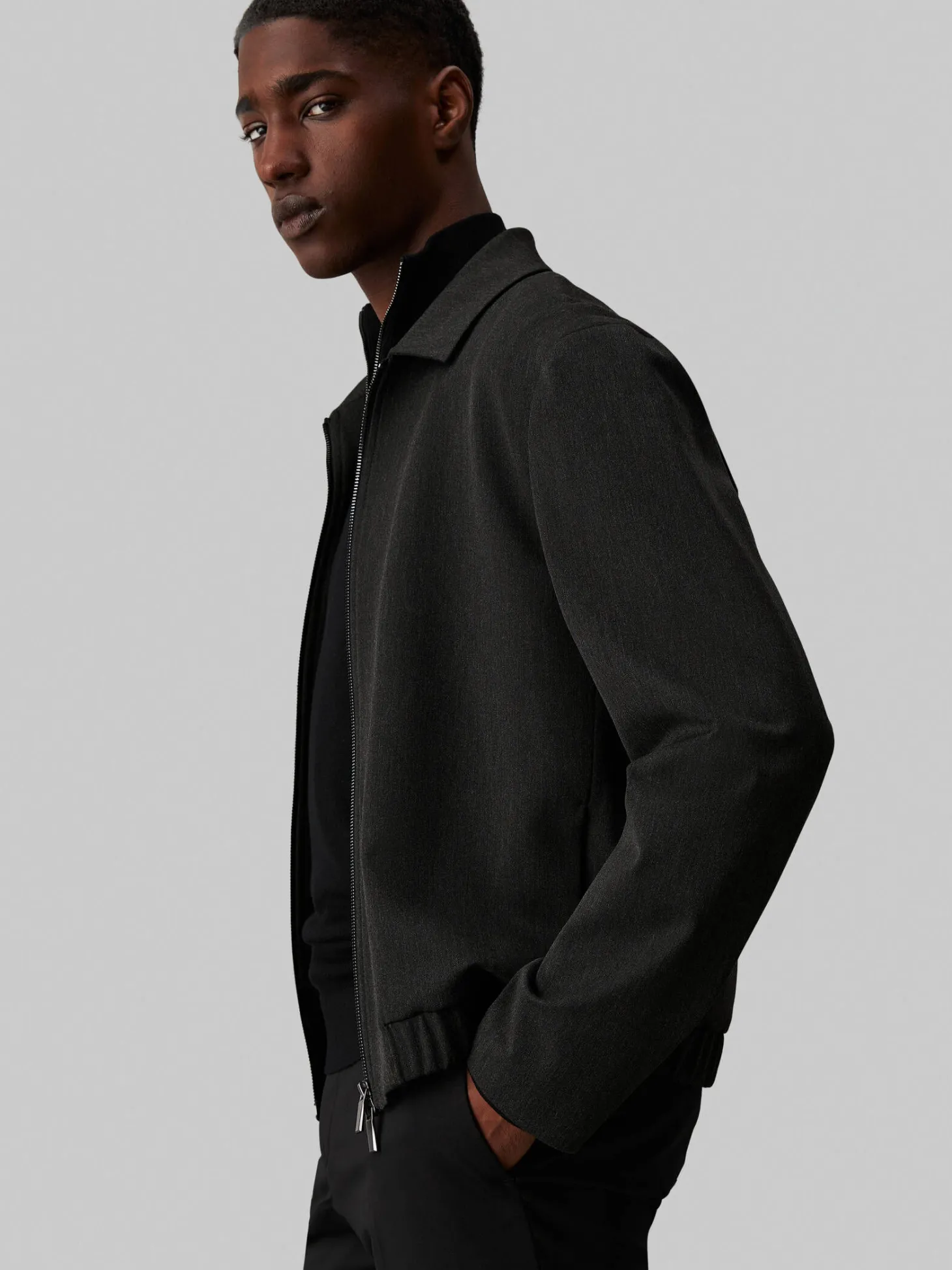 Diese Blousonjacke aus technischem, waschbarem Flanell bietet eine normale Passform mit flachem Kragen und einem doppelseitigen Reißverschluss. Die elastischen Bündchen und der Polyester-Futterstoff sorgen für Komfort, während seitliche Einschubtaschen praktisch sind.