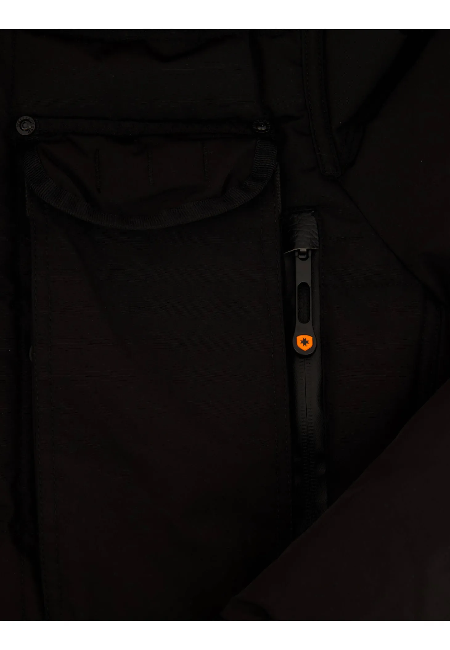 - Verstellbare, mittels Reißverschluss abnehmbare Kapuze mit weichem Fleece-Futter und abnehmbarem Webpelzbesatz