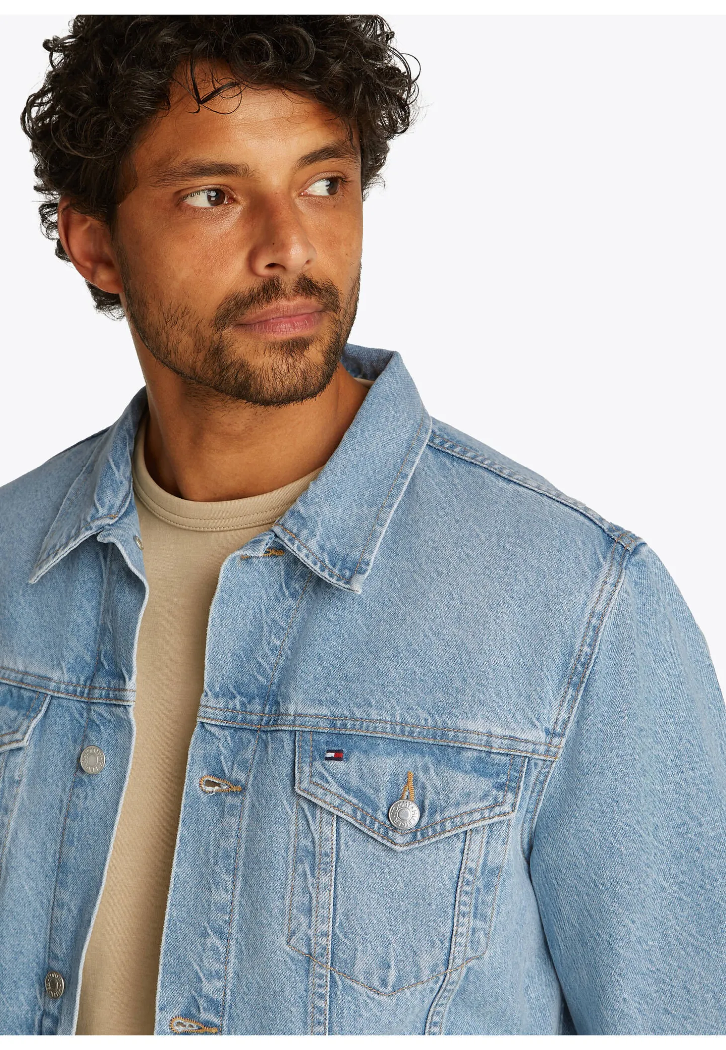 Die Trucker Jeansjacke von Tommy Jeans ist aus Rigid Denim gerfertigt und sorgt mit Vintage-Waschung sowie Bleicheffekten für einen coolen, authentischen Look.