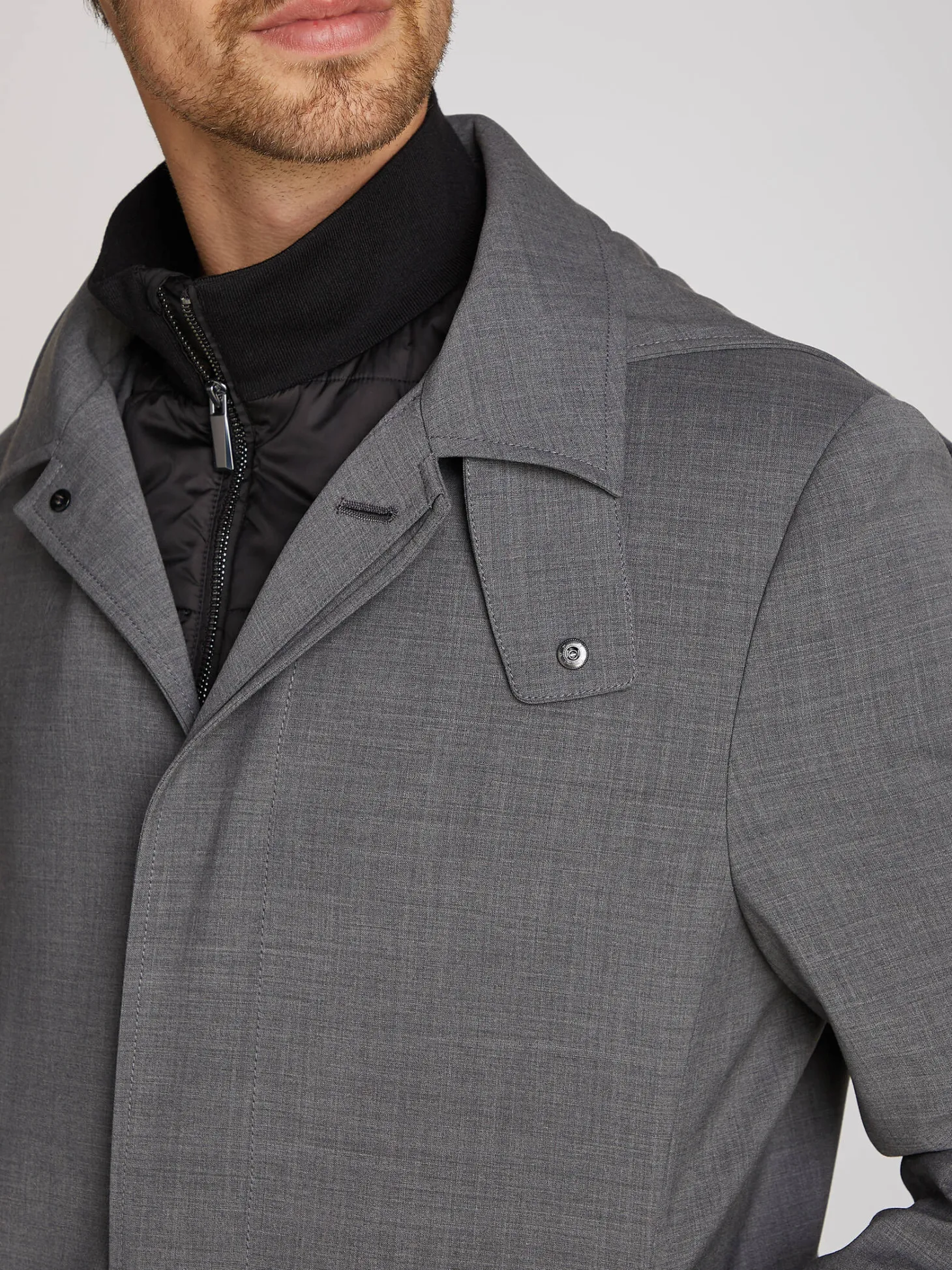 Moderner Mantel Wool Blend Car von Calvin Klein aus gebondetem Woll-Polyester-Gemisch.