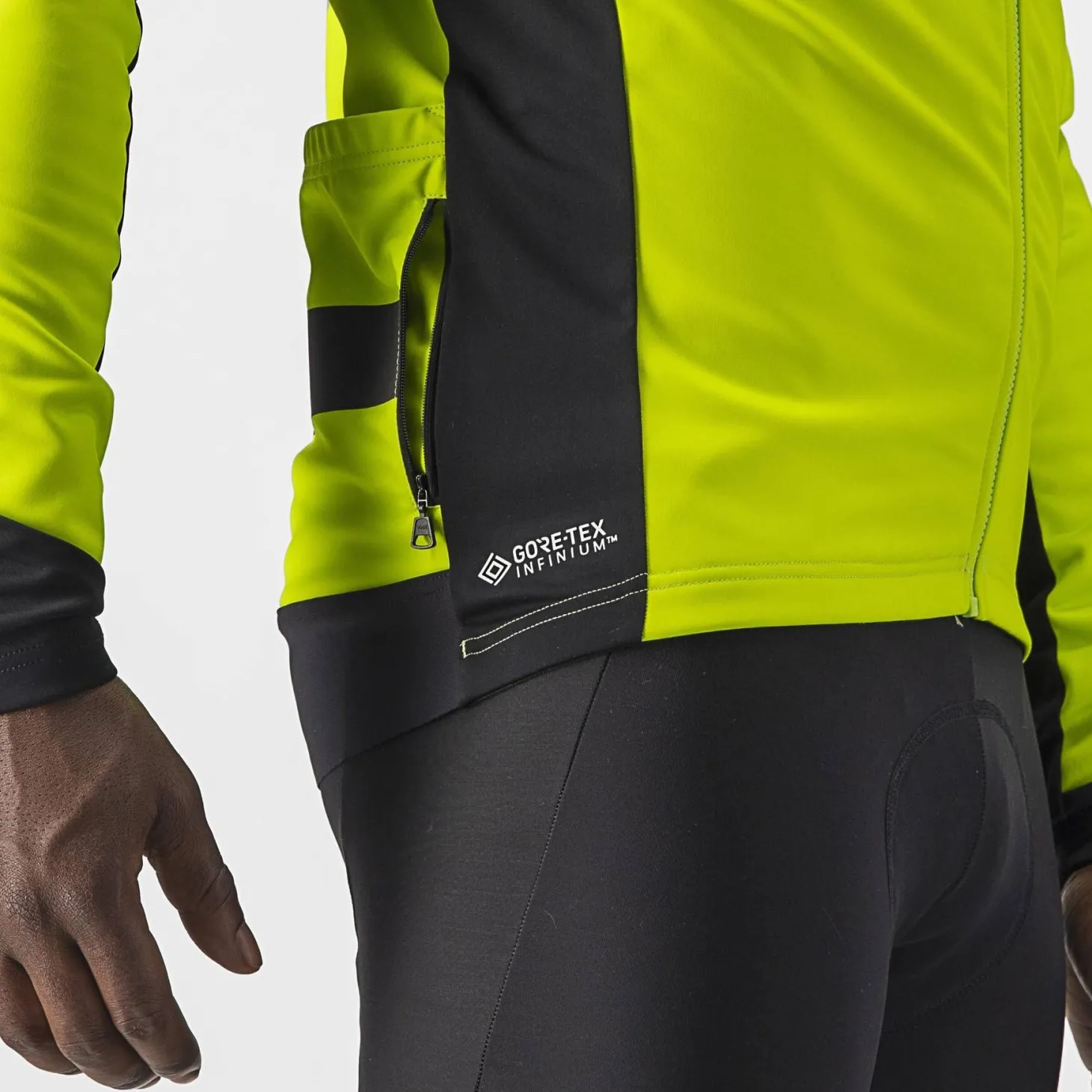- Leichtere Seitenbahnen und Ärmeleinsätze aus GORE-TEX INFINIUM™ WINDSTOPPER® 150-Material für zusätzliche Elastizität und Belüftung