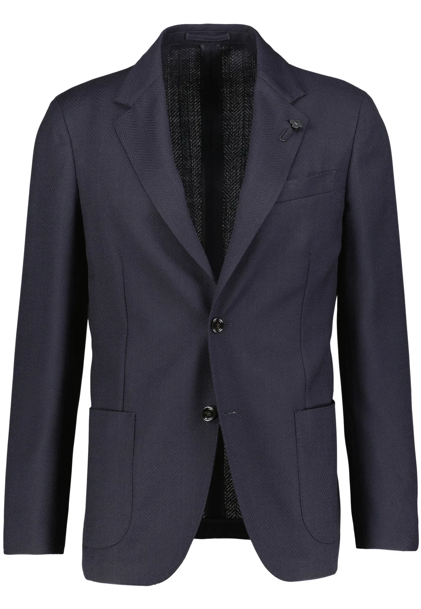 - Revers-Kragen mit umstickten Knopfloch und charakteristischer Blumenklammer