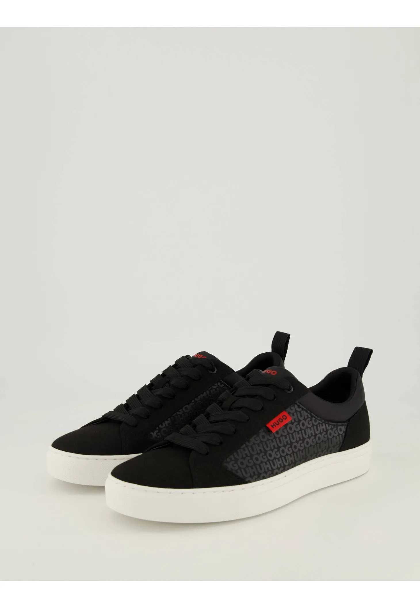 Der HUGO Sneaker Morrie trägt sich angenehm leicht und punktet zudem mit einem Ton-in-Ton Logomuster sowie textilem Verloursmaterial.