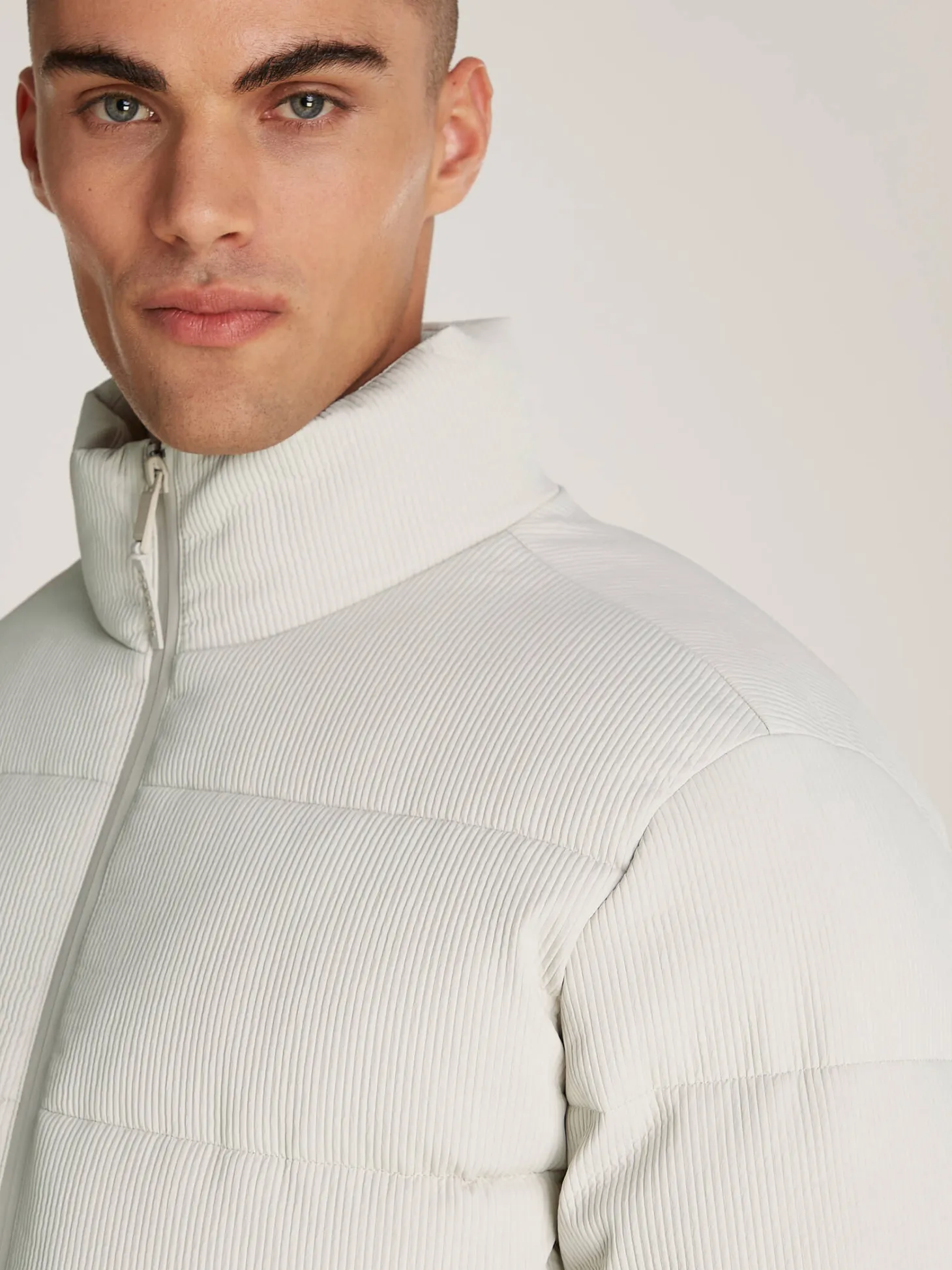 Die Steppjacke Texture Quilt Puffer von Calvin Klein überzeugt mit smarter Optik, hohem Recycling-Anteil sowie ausgezeichnetem Wärmekomfort.