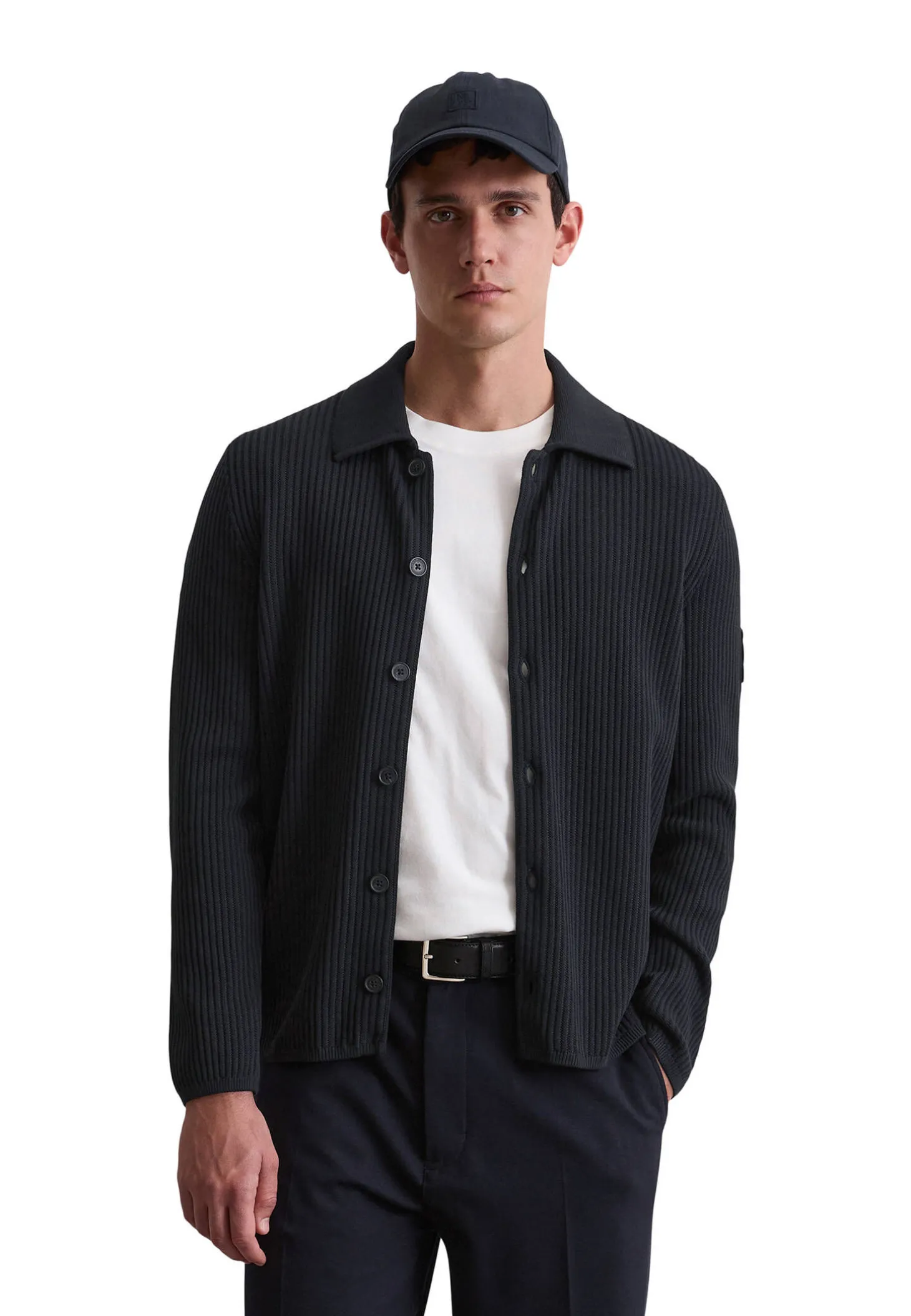 Dieser Cardigan aus elastischem Bio-Baumwoll-Rippstrick mit Garment-Dye-Finish bietet hohen Tragekomfort und eine lebendige Optik. Designt für die deutsche Fußball-Nationalmannschaft, überzeugt er mit sportivem Polokragen, modernem Regular Fit und Marc O’Polo x DFB Logolabel am Oberarm.