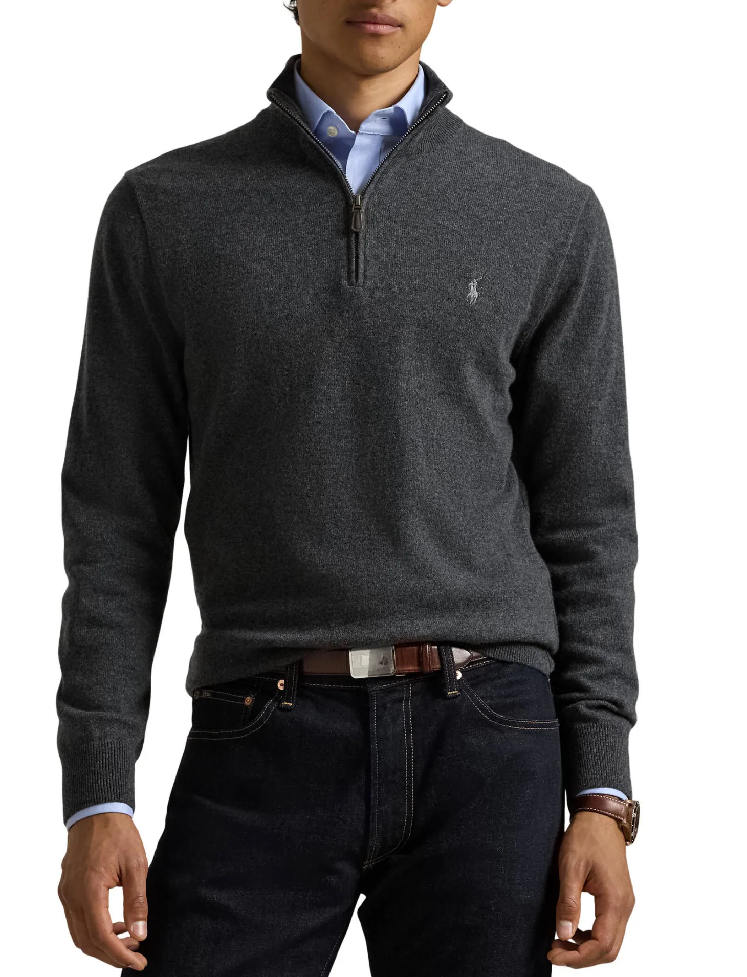 - Viertelreißverschluss vorne mit Zuglasche aus Wildleder