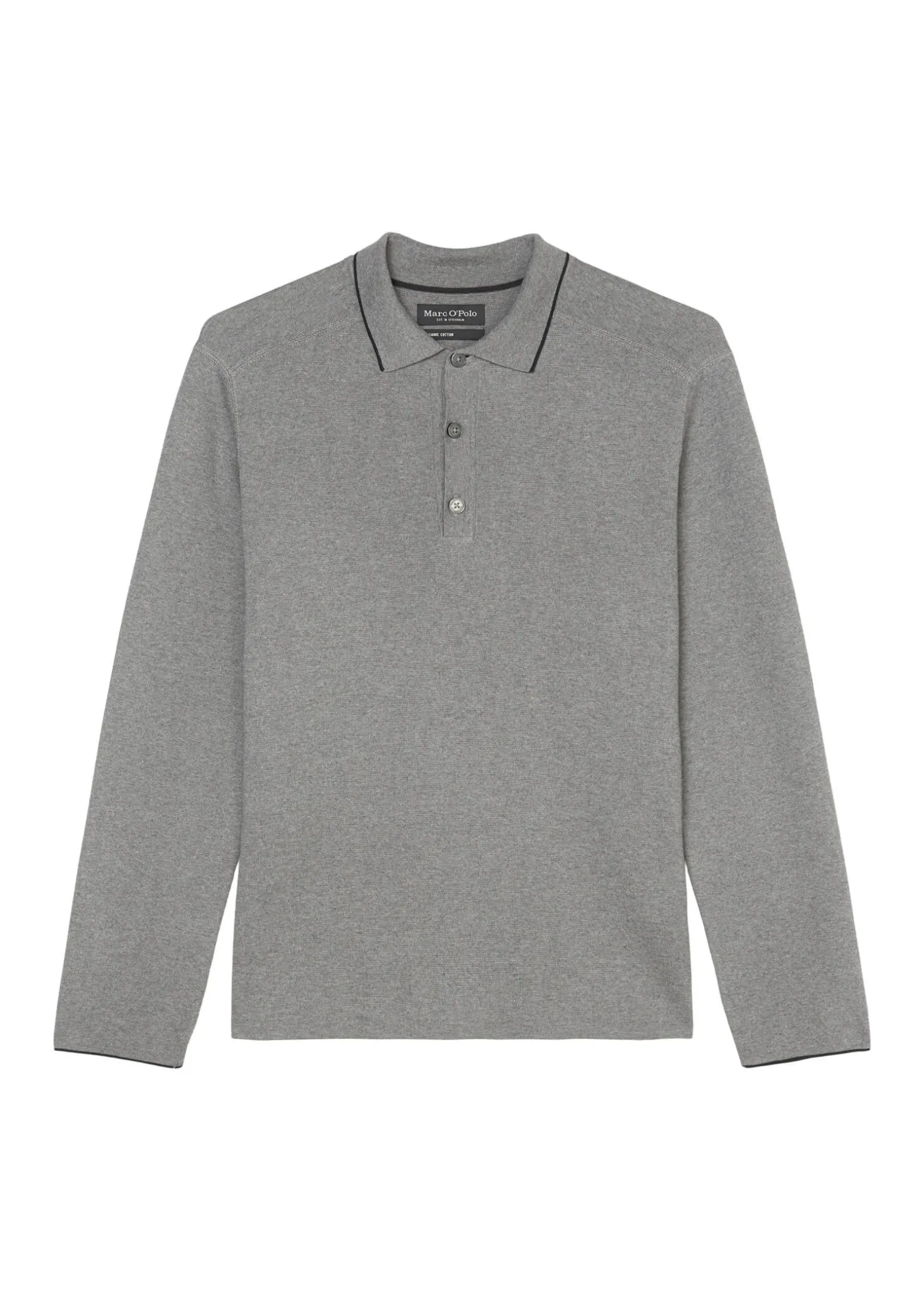 Der Strickpullover von Marc O’Polo im Polo-Stil, verbindet einen zeitlosen Stil mit nachhaltigem Tragekomfort.