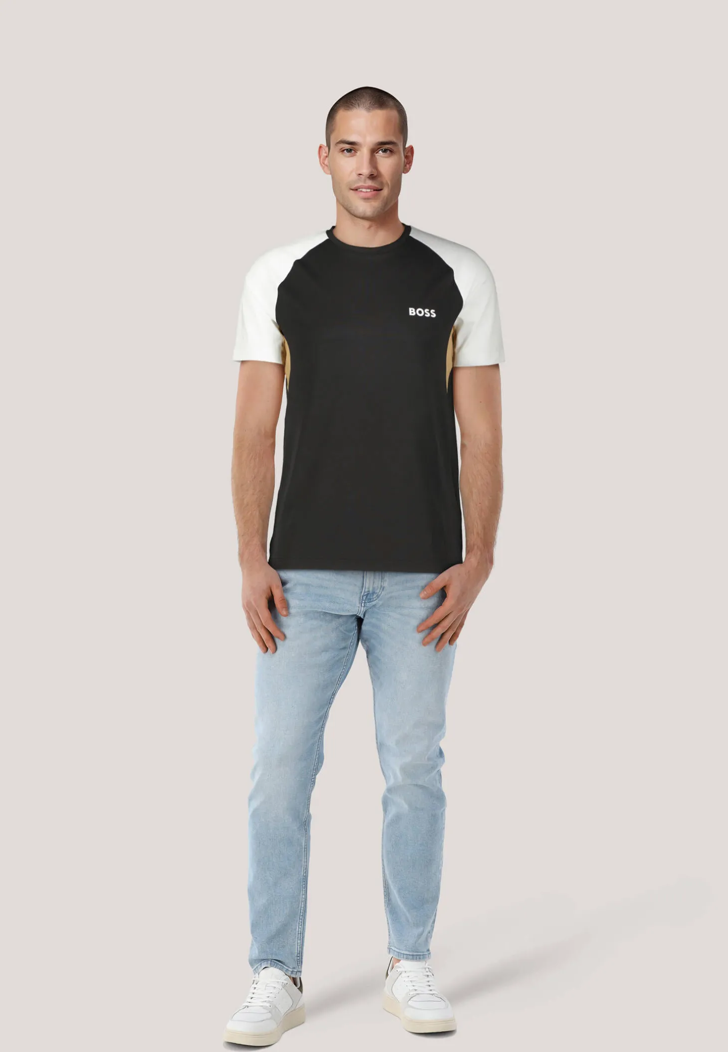 Sportives T-Shirt von BOSS aus flexiblem Performance-Gewebe im Colour-Block-Design.