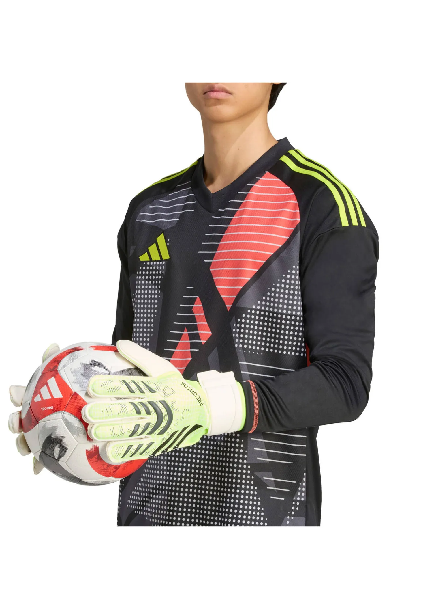 Die adidas Torwarthandschuhe Predator Match bieten mit dämpfendem Soft Grip Pro Latex in der Handfläche, einem flexiblen Handrücken und einer halb umlaufenden Handgelenksbandage optimalen Komfort, sicheren Halt und zuverlässigen Schutz bei jedem Spiel.