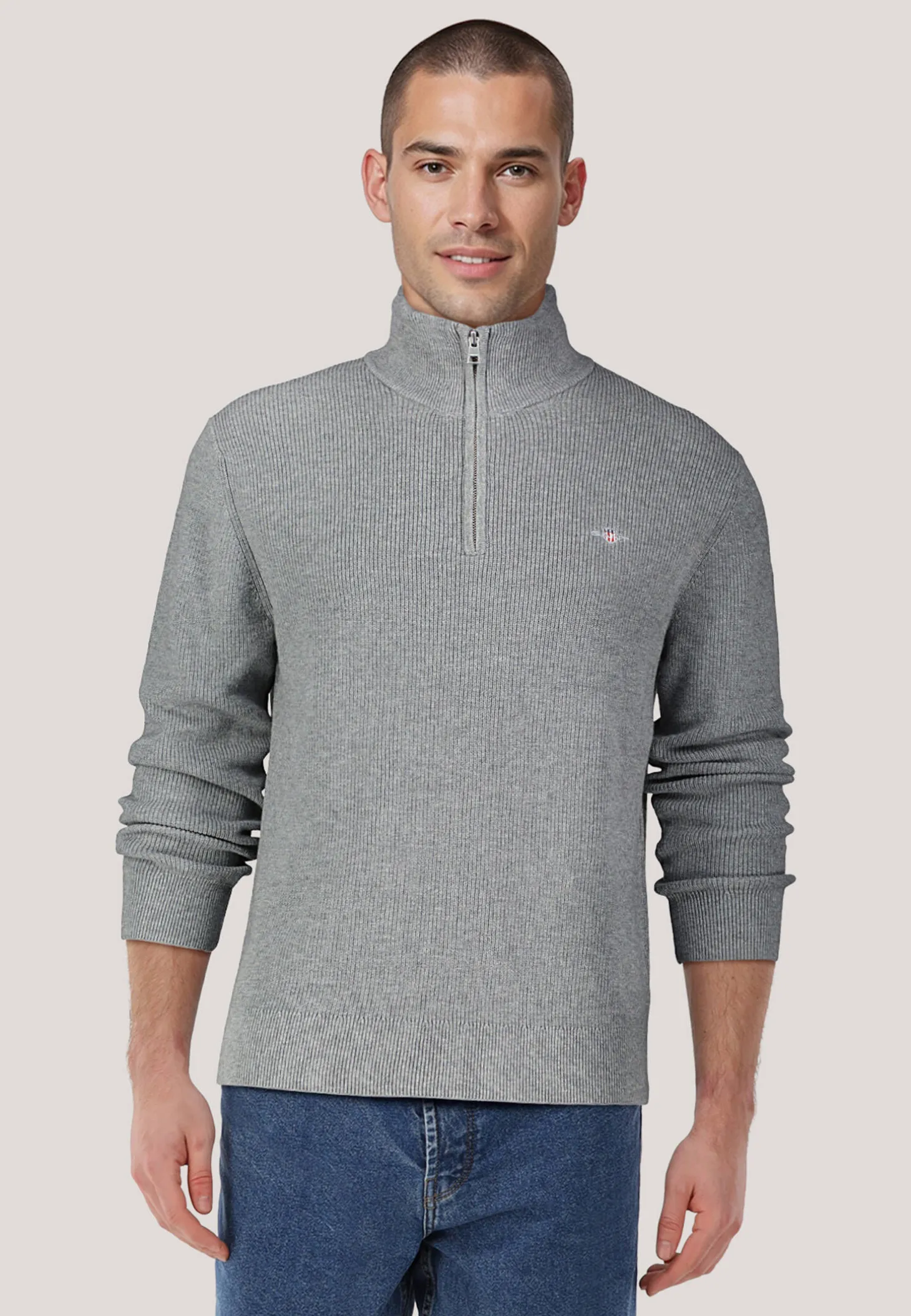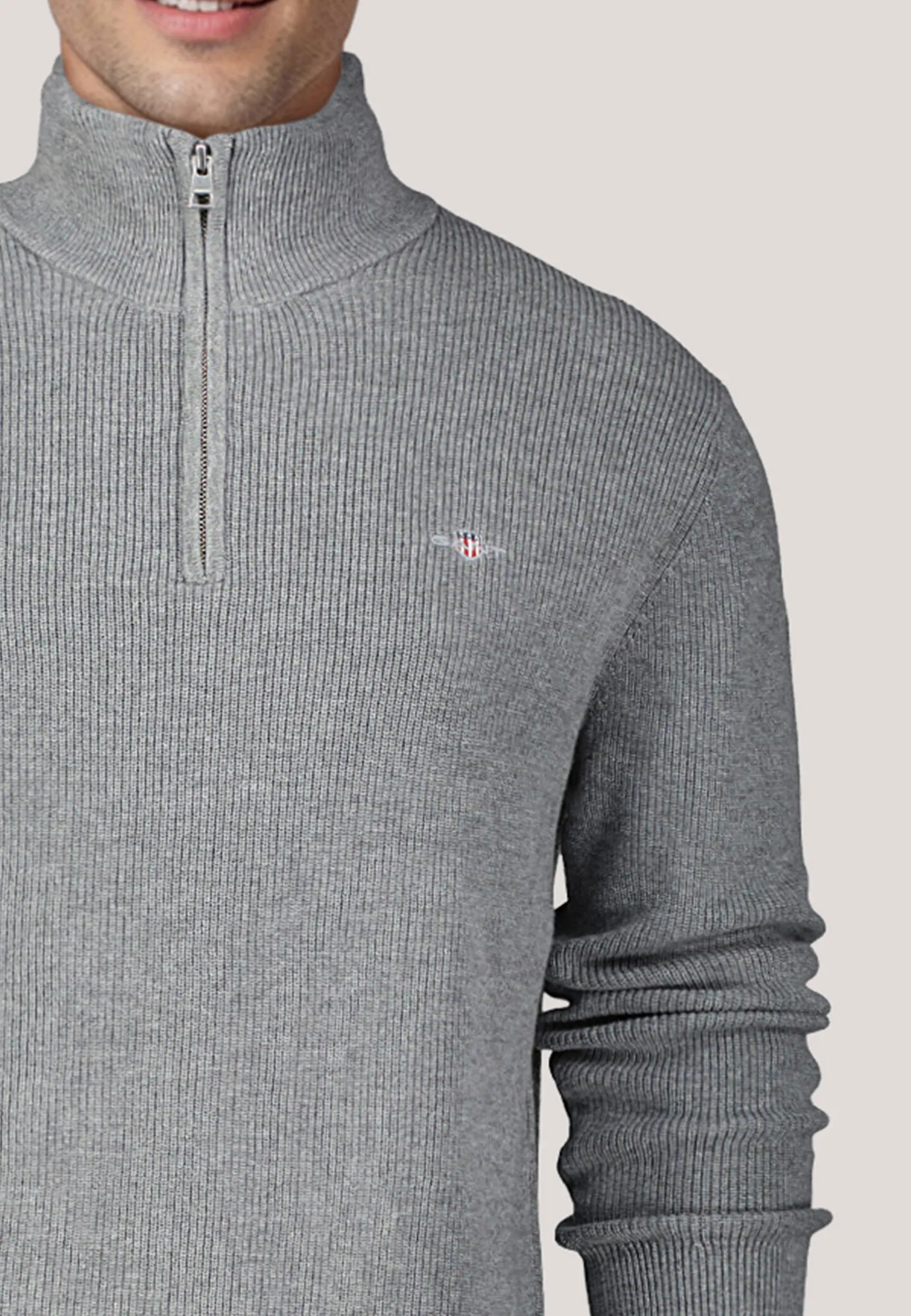 Der Pullover von Gant ist aus einem soften, hochwertigen Baumwolle-Merino-Mix gefertigt und mit praktischem Reißverschluss ausgestattet.