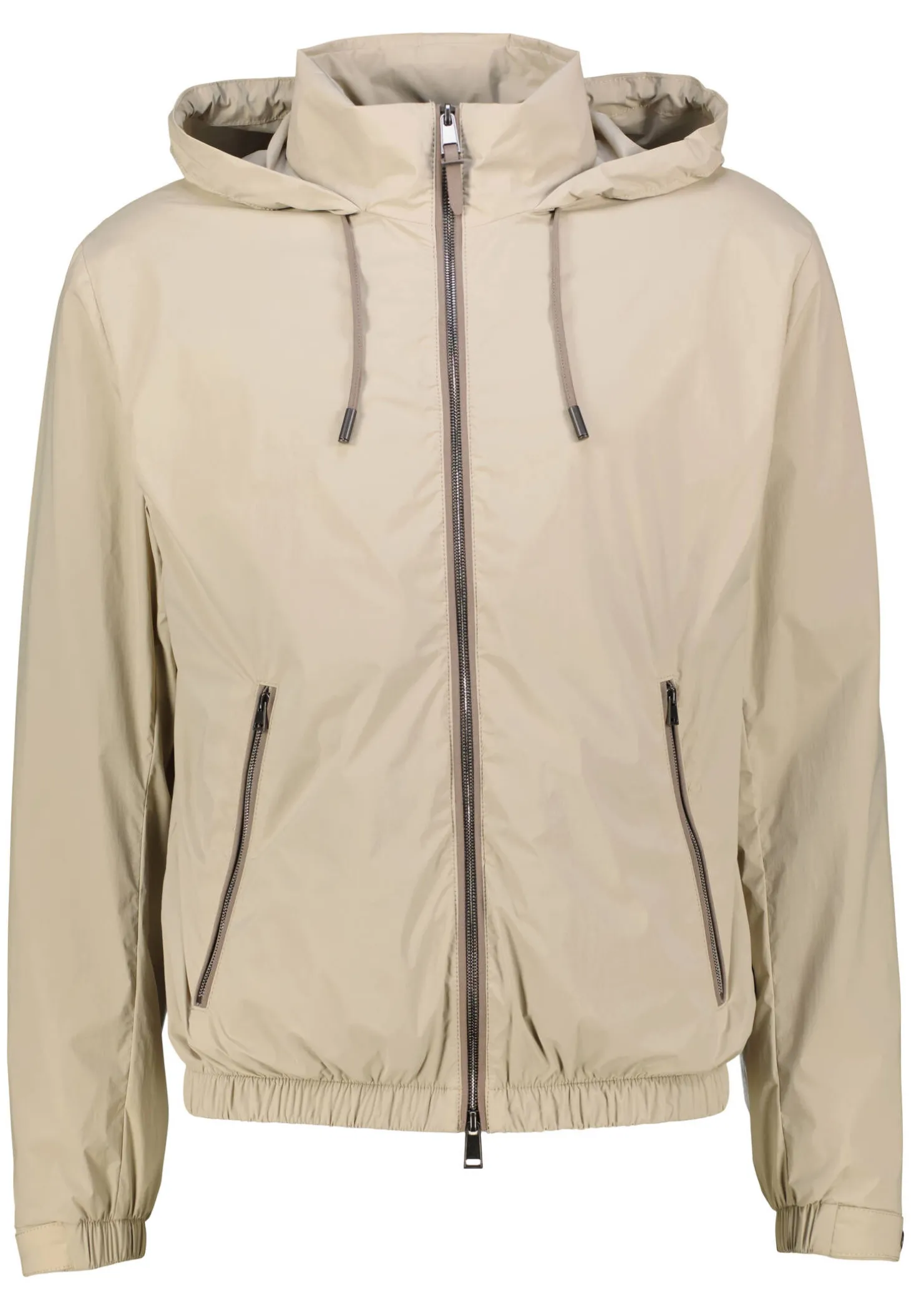 Diese Windjacke punktet mit einem elastischen Innenfutter für optimalen Komfort und einem wasserabweisenden Finish. Die verstaubare Kapuze sorgt für Flexibilität, während die gerade Passform den modernen Look unterstreicht.