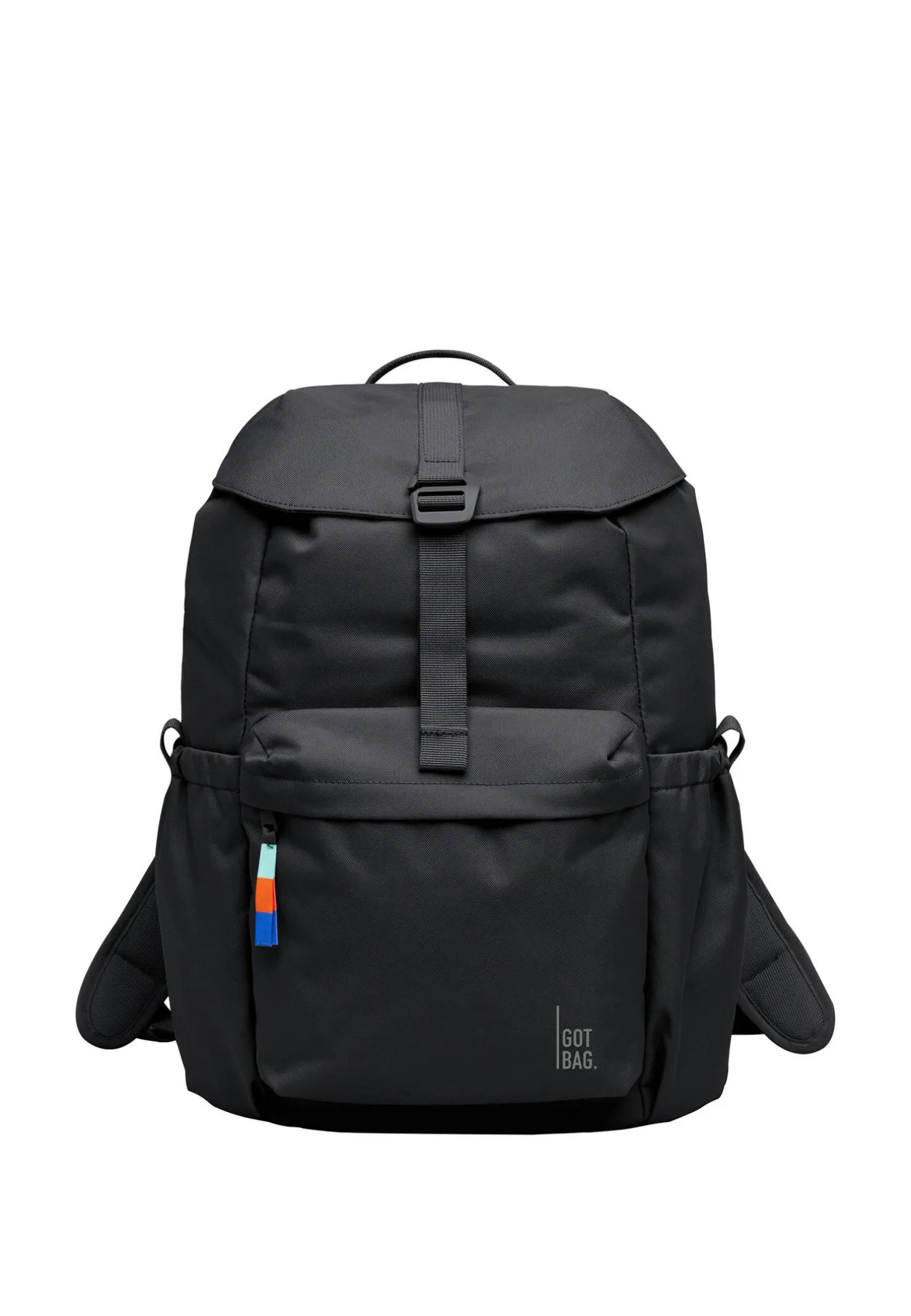 - Zwei elastische Seitenfächer für Flaschen