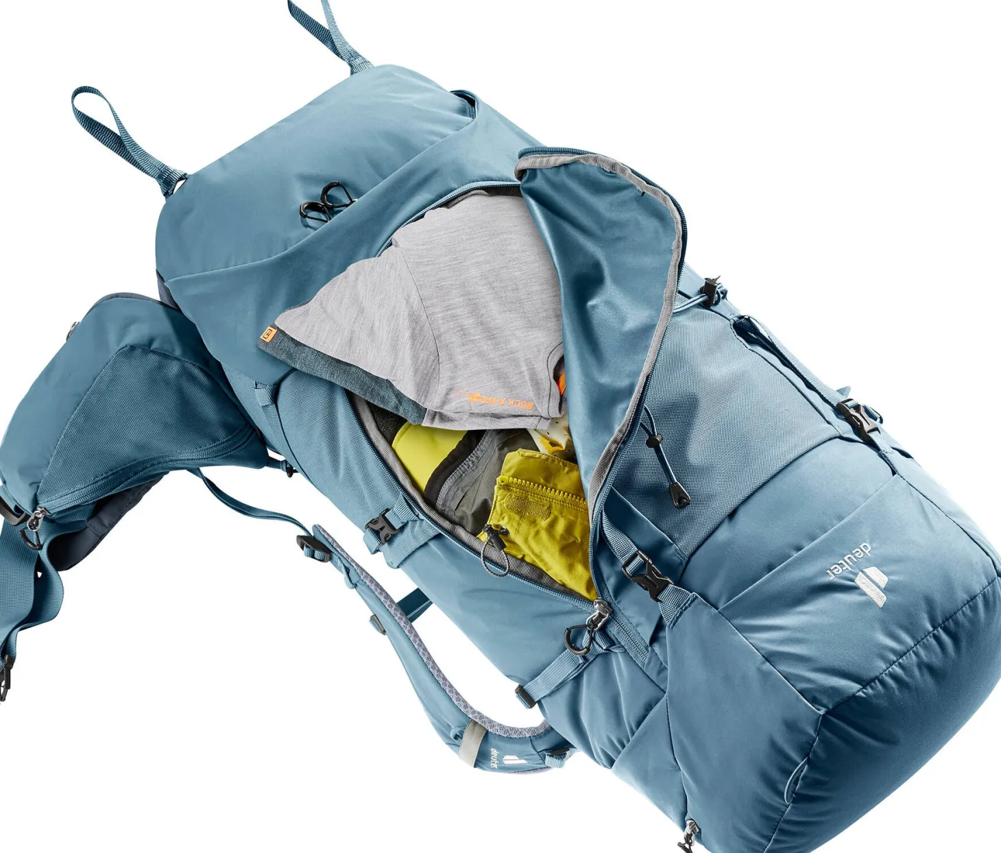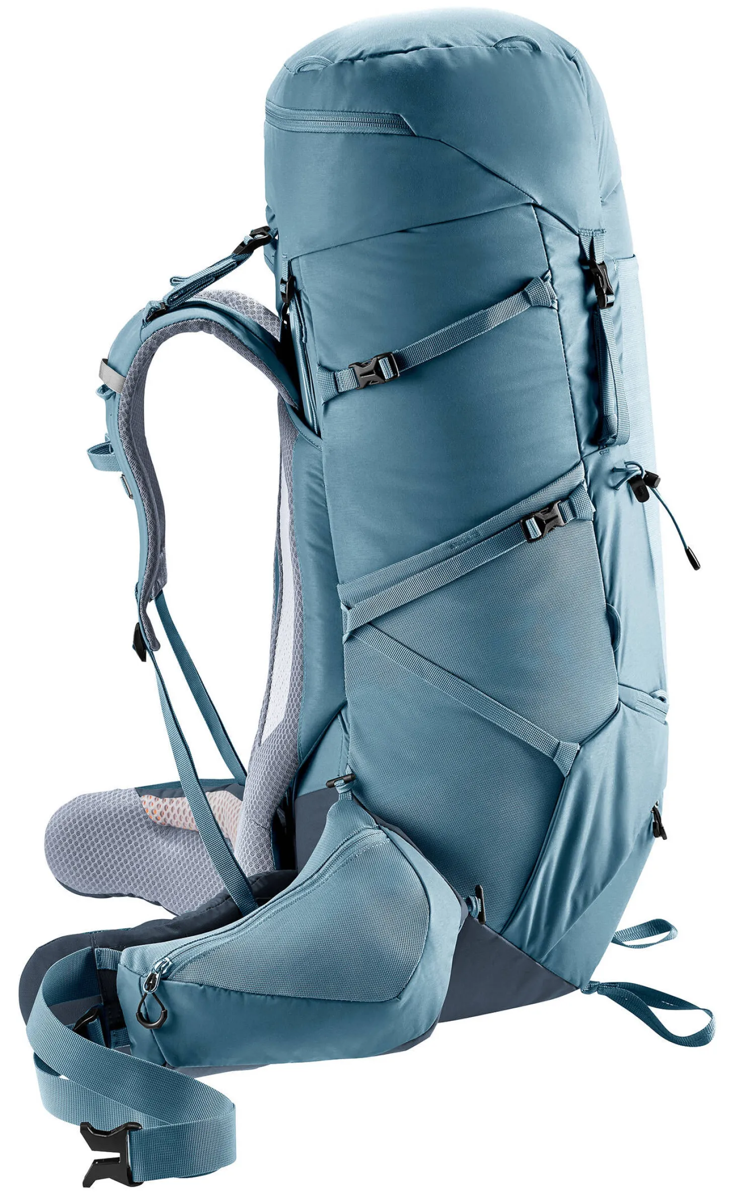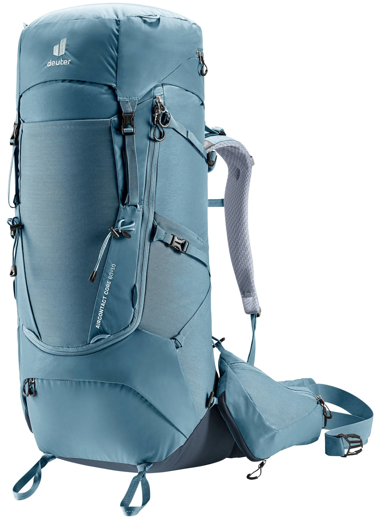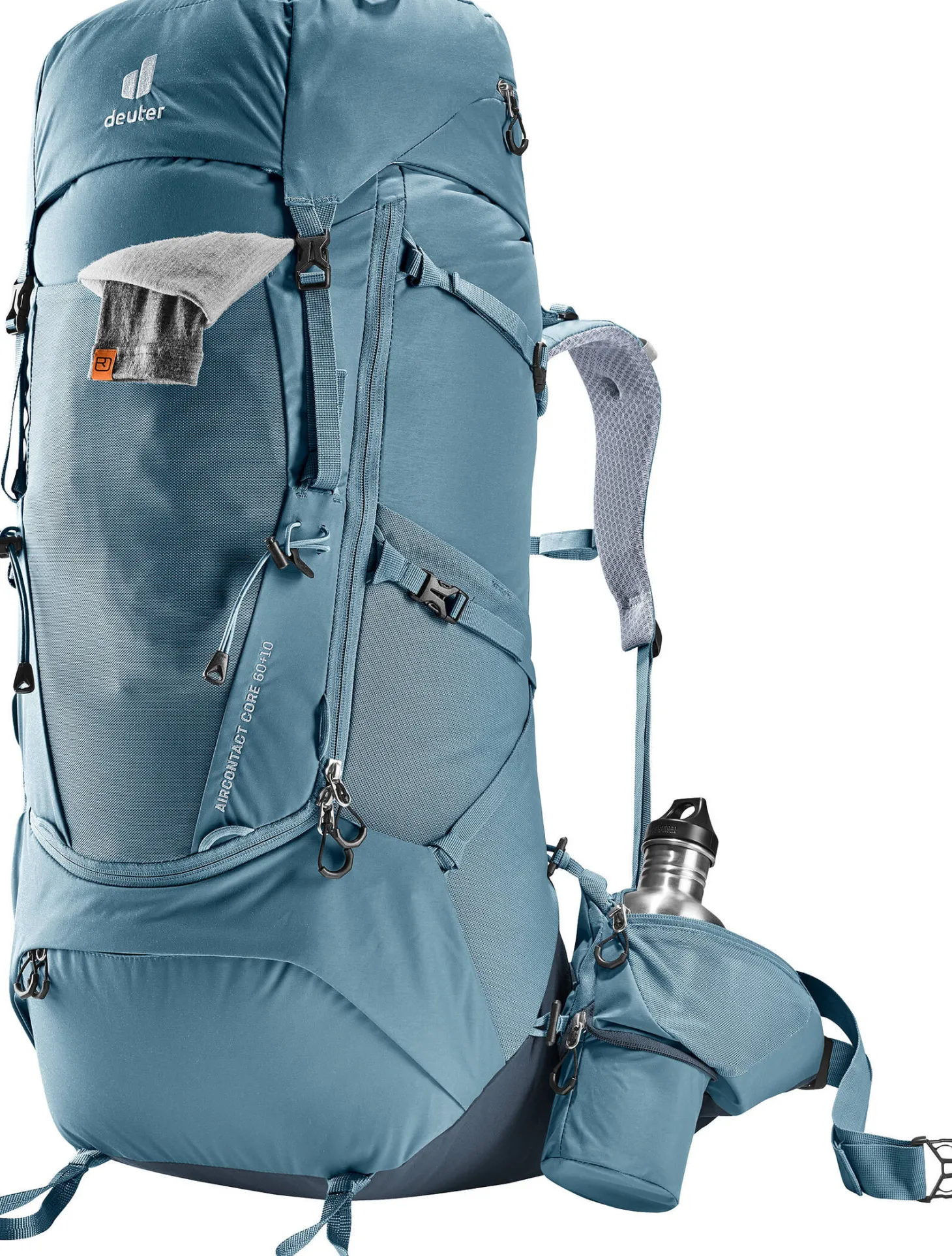 Für hohen Tragekomfort und optimale Lastverteilung sorgen das Aircontact-Rückensystem mit Air Spacer Mesh und großem Belüftungskanal, die bequemen Schulterträger, die beweglichen Hüftflossen und das ergonomische Lumbalpad. Eine große, J-förmige Frontöffnung gewährt mühelosen und schnellen Zugang auf den Rucksackinhalt. Zudem bieten die abnehmbaren 3 Liter Hüftflossentaschen mehr Volumen für persönliche Gegenstände. Und auch Trinkflaschen bis 1,5 Liter finden in einer ausklappbaren Tasche Platz.