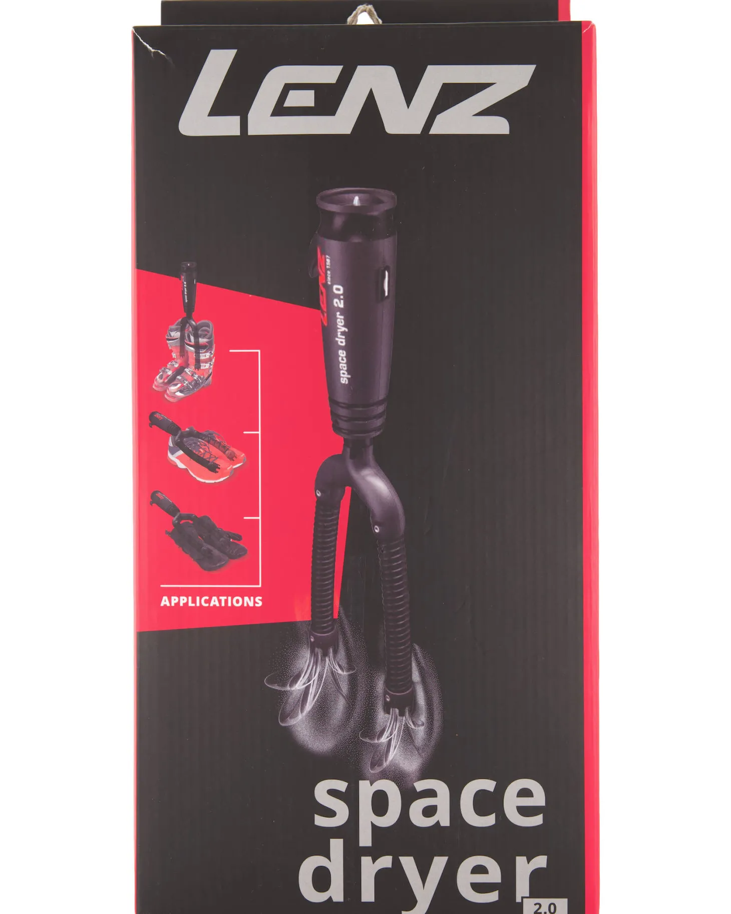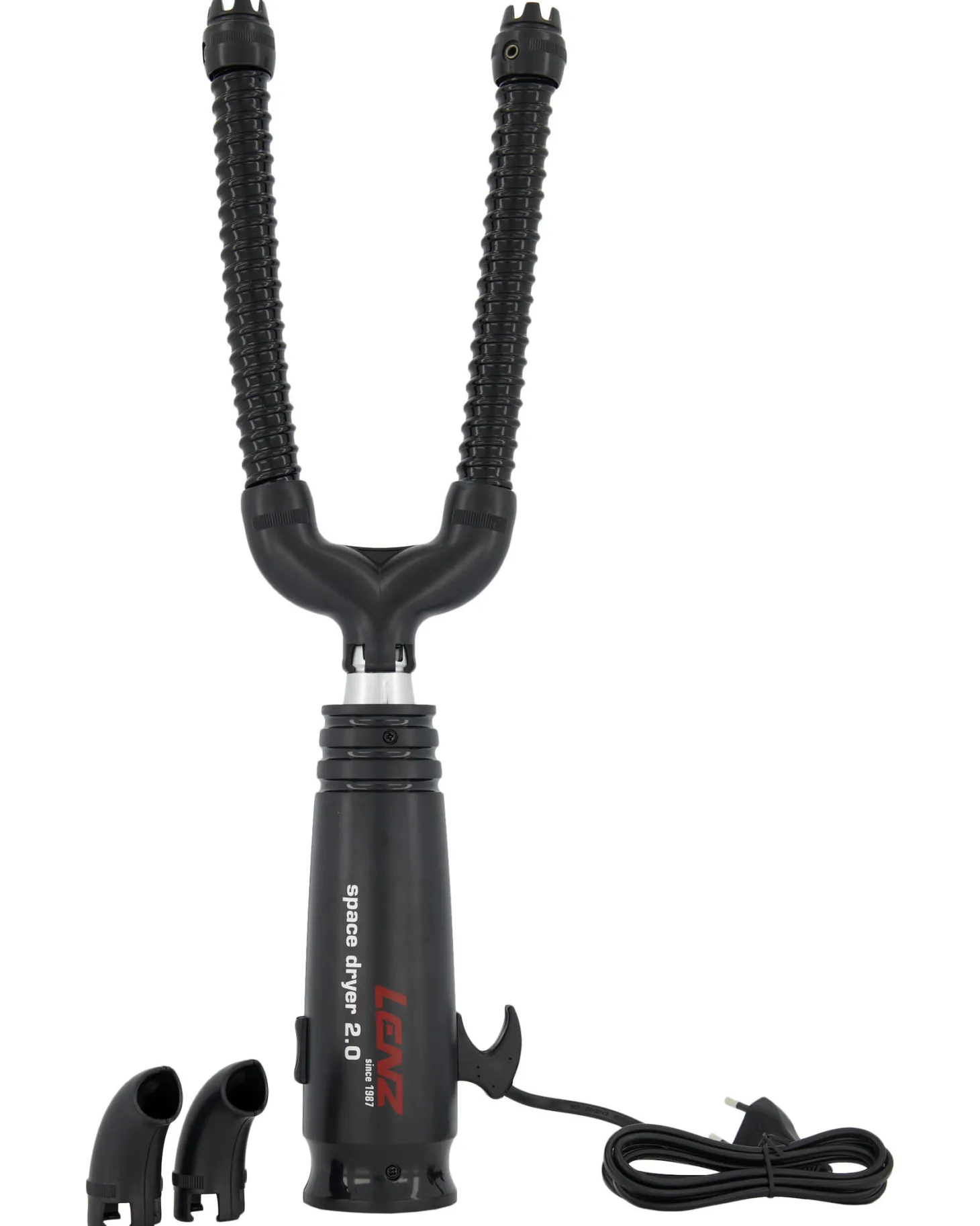 - Packungsinhalt: 1 Space Dryer 2.0 (240 V); ein Verteiler mit Verlängerungsschläuchen und zwei Düsen; 2 Duftplättchen